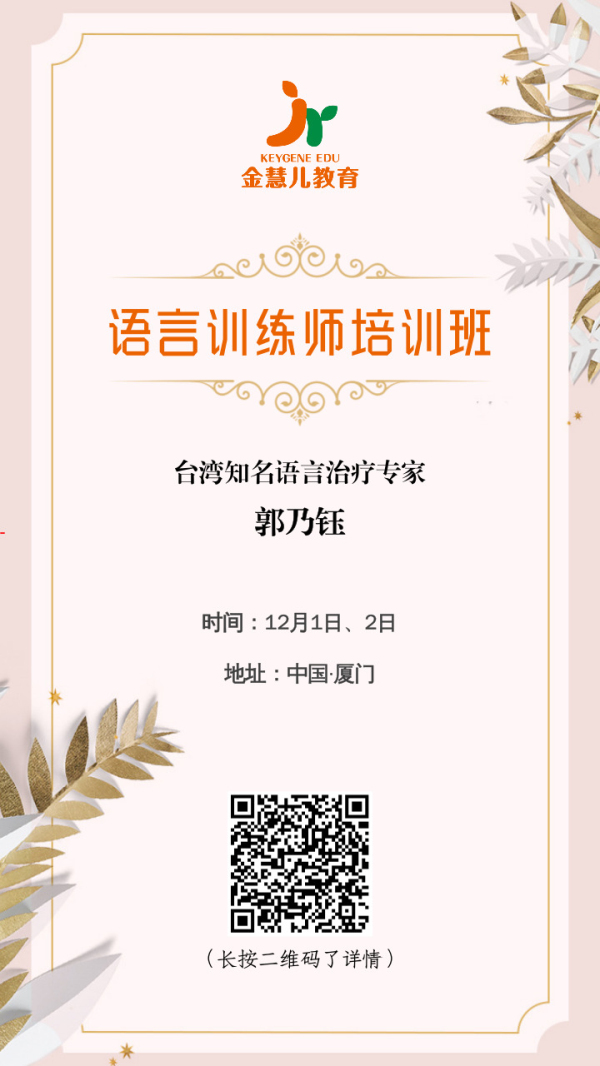 【报名】台湾语言治疗专家郭乃钰-语言训练指导师培训班
