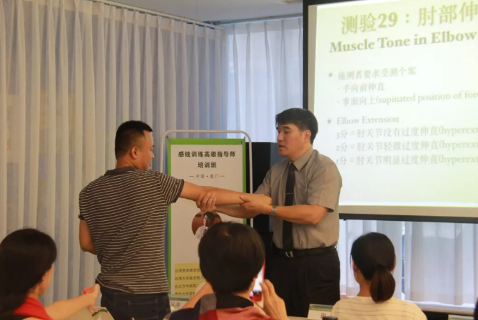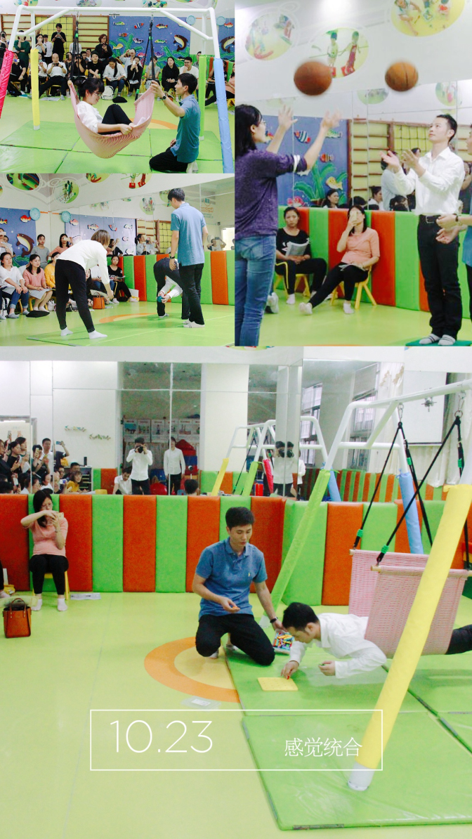 第四天是由多年教学经验的感统专家黄羽老师培训,讲解和示范如何评估、教具操作、个案分析、家庭指导等,为相关从业人士开展实际指导。