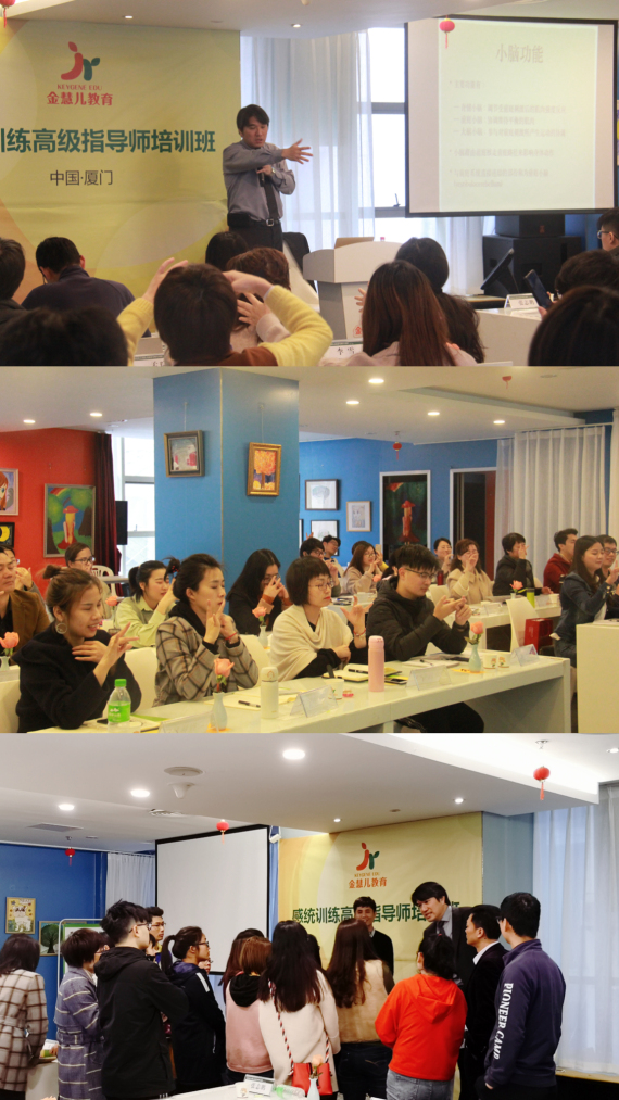 三月春光无限,刚结束一场语言训练指导师培训班,接踵而来又是一场感统训练高级指导师培训班。来自全国各地的老师、康复人员齐聚美丽城市厦门,由金慧儿教育与心树教育主办的感统训练高级指导师培训班圆满举办。本次培训班由台湾资深感觉统合专家、前台北台安医院小儿复健主任陈达德医师携手金慧儿教育中心主任、心树教育联合创始人黄羽老师开展为期四天的“理论+实操”的一站式感统培训,获得学员的一致认可与好评。