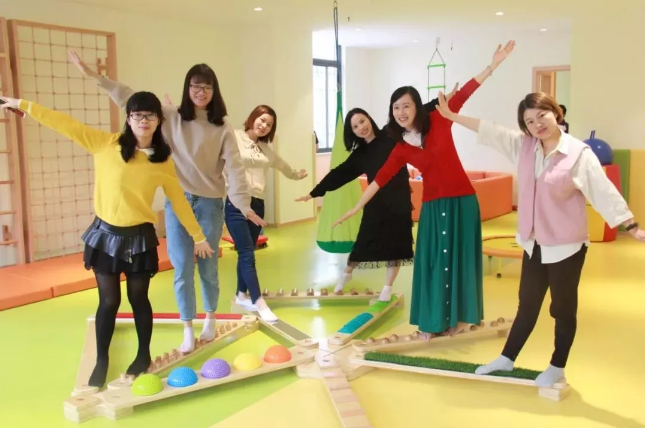 如今,金慧儿的老师都具备超强的专业知识和技能,不仅可以训练众多儿童,还可以自己当讲师培训全国的感统老师。