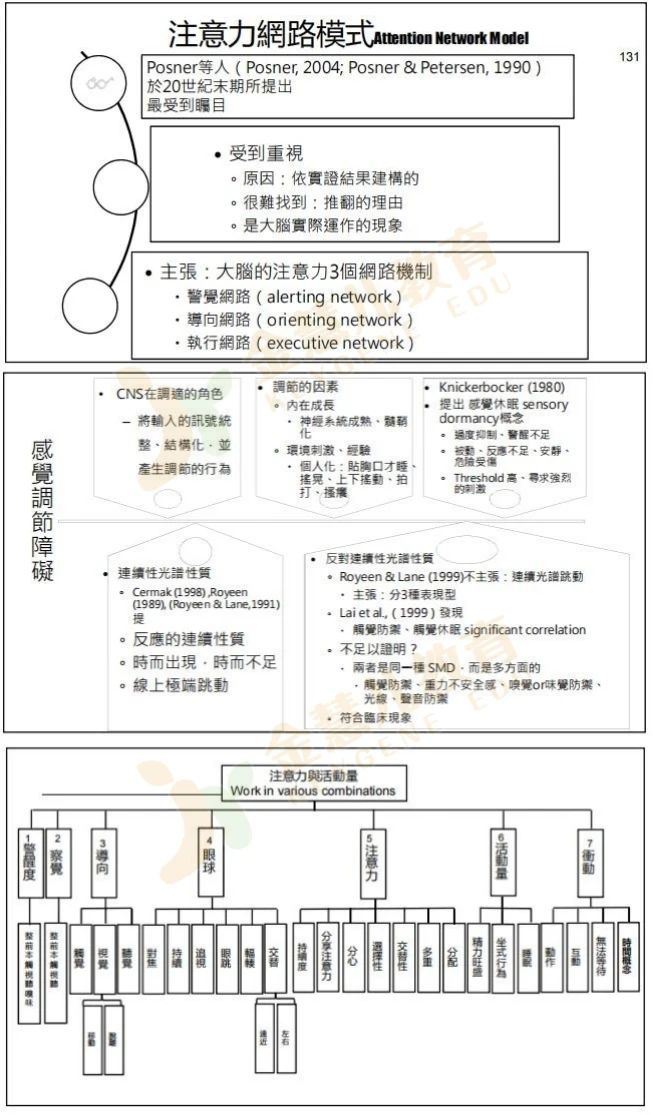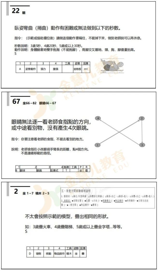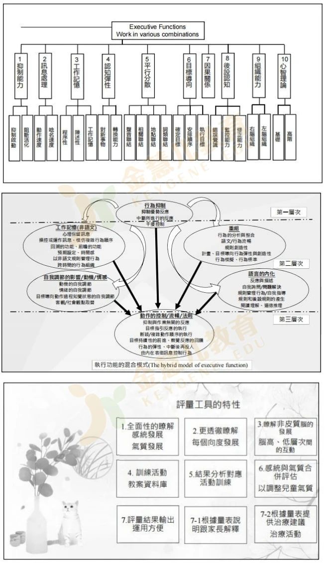 本次培训,围绕执行功能、感觉统合、注意力与活动量、行为情绪气质、视觉空间,一共五大维度的评估技能传授。台湾感统讲师培训